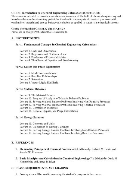 Che 31 Introduction To Chemical Engineering Calculations Credit